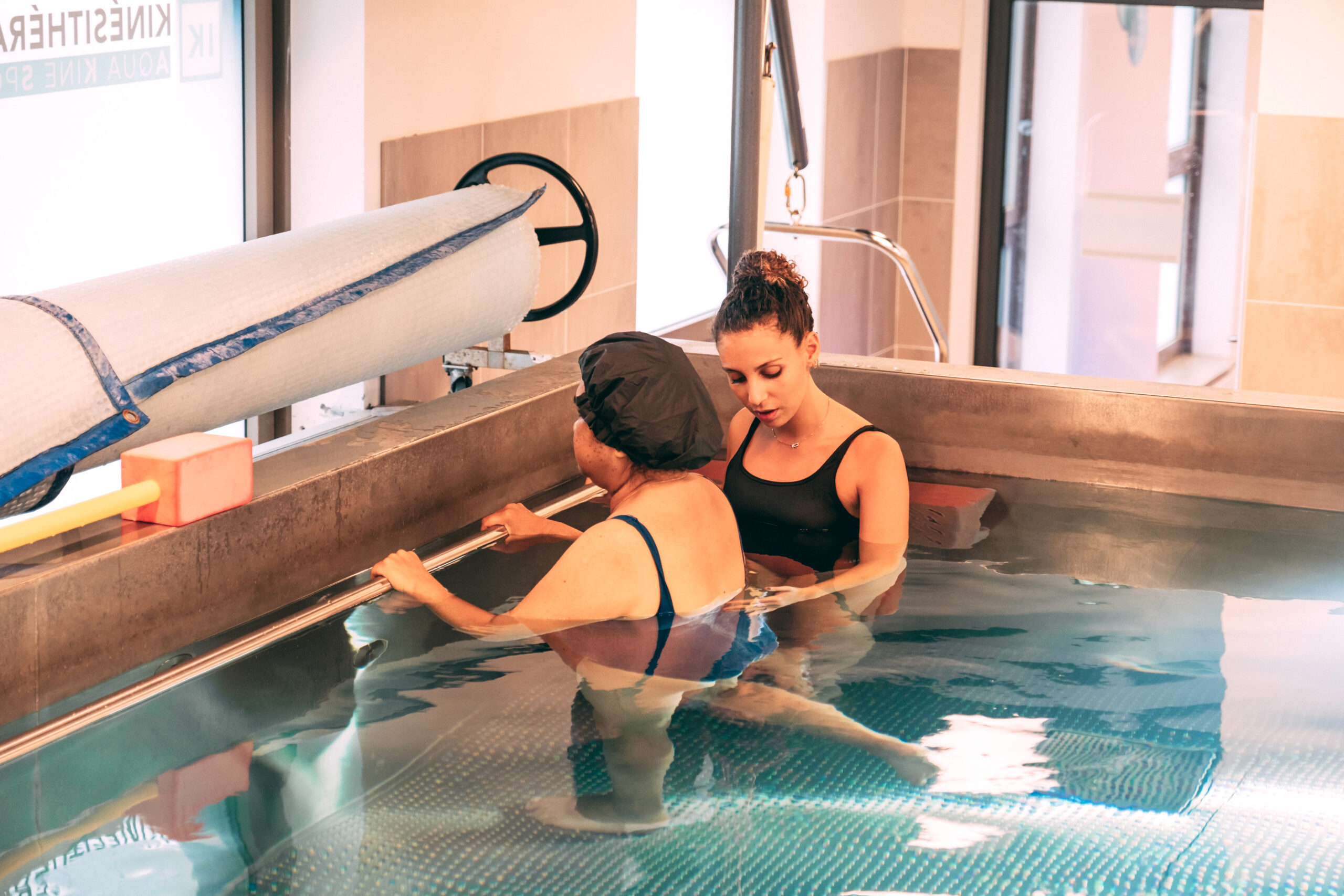 La balnéothérapie permet de travailler en décharge partielle, notamment en cas de douleur ou après chirurgie. Elle complète le travail à sec mais ne le remplace pas.